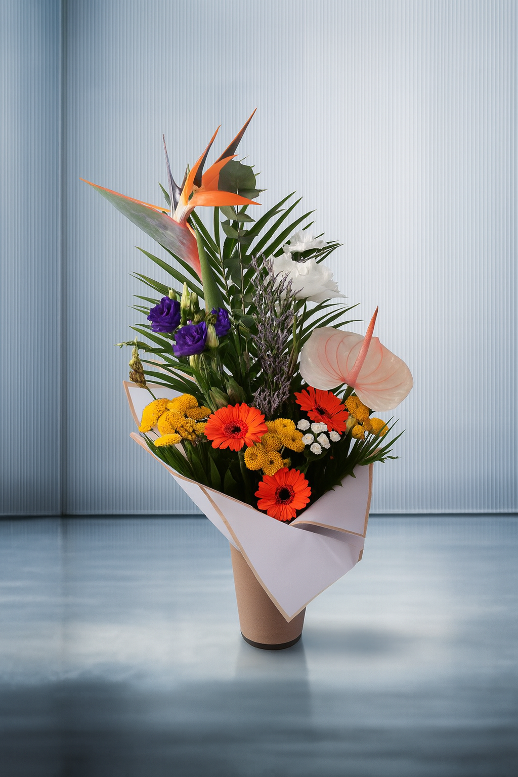 Die Blumen können je nach Verfügbarkeit und Jahreszeit in Sorte bzw. auch Farbe variieren.